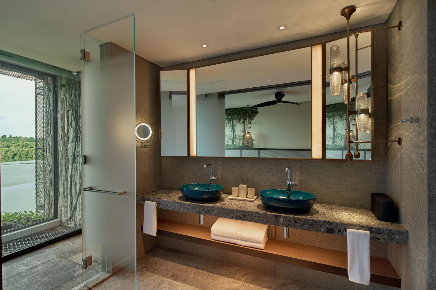 這裡無疑是新加坡真正的「綠色心臟」。酒店並非單純地毗鄰自然公園,而是直接坐落在了自然生態保護區的裡面,與新加坡動物園、夜間野生動物園、河川生態園、飛禽公園以及已經開幕的亞洲雨林探險園這五大生態奇觀無縫銜接。