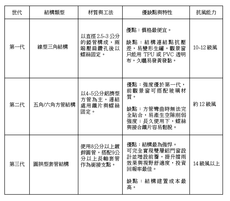 2. 外帳材料:耐候性與強度的考驗