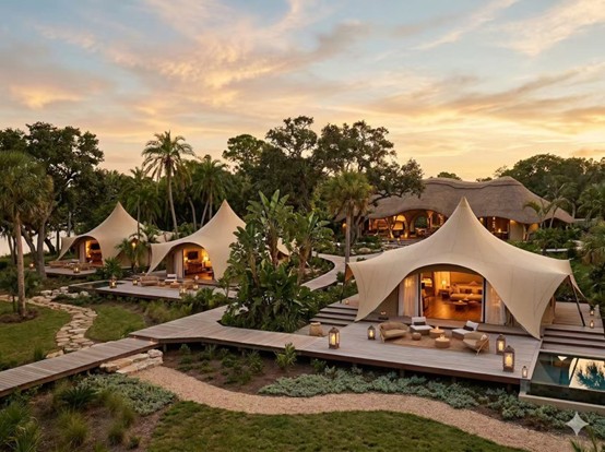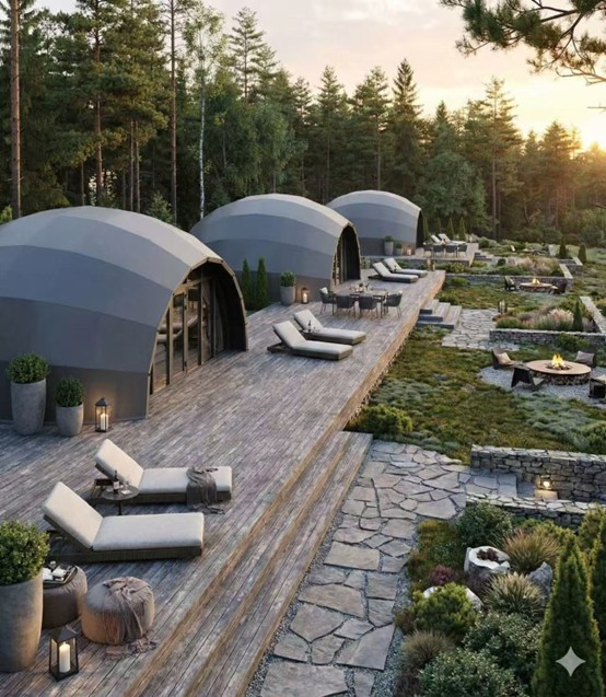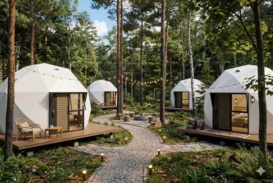 所謂的「微度假度假村」或「野奢營地」,是指以戶外自然空間為載體,鎖定城市客群週末及短假期的出行需求。在「投資體量、空間規模、運營團隊」三者皆輕量化的前提下,透過差異化的主題場景與高濃度的情緒價值,實現單客高價值轉化的文旅新業態。其核心特徵可概括為三大關鍵詞: